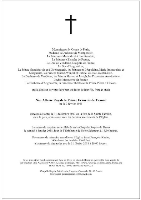 Prince Francois died at Nantes.  The funeral will be on Saturday at Dreux.