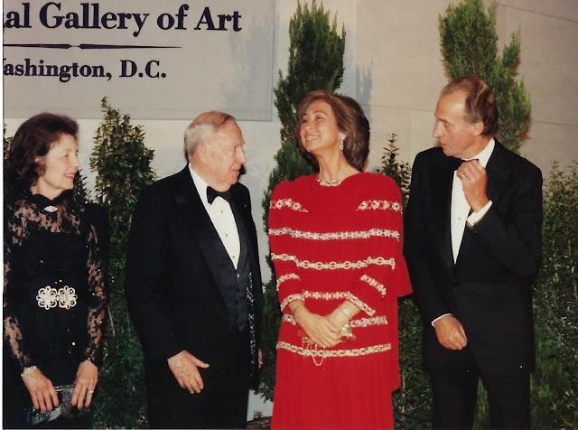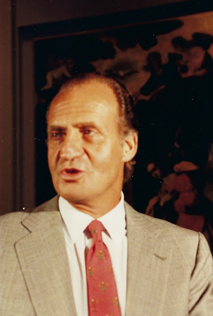 | I think this may be my favorite photo that I have taken: the king embraces Opera singer Placido Domingo as the Queen looks on. In NYC in 1987 |
