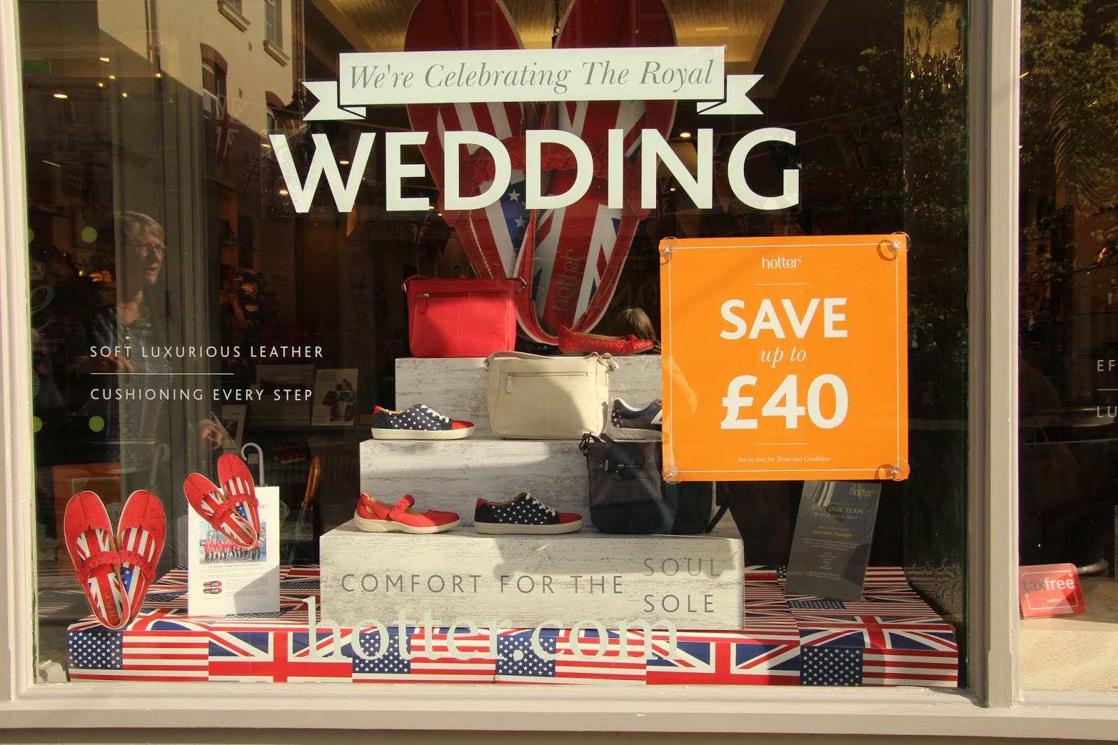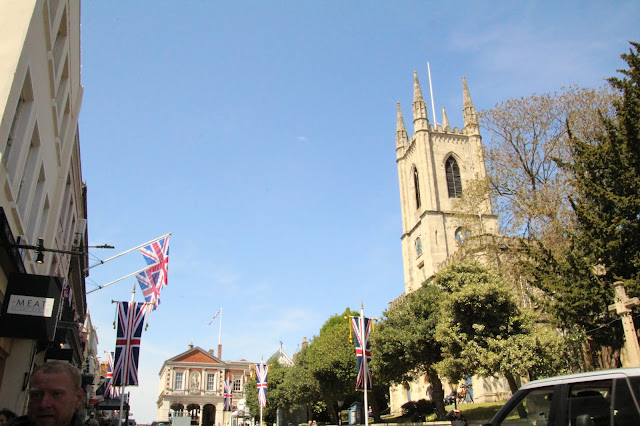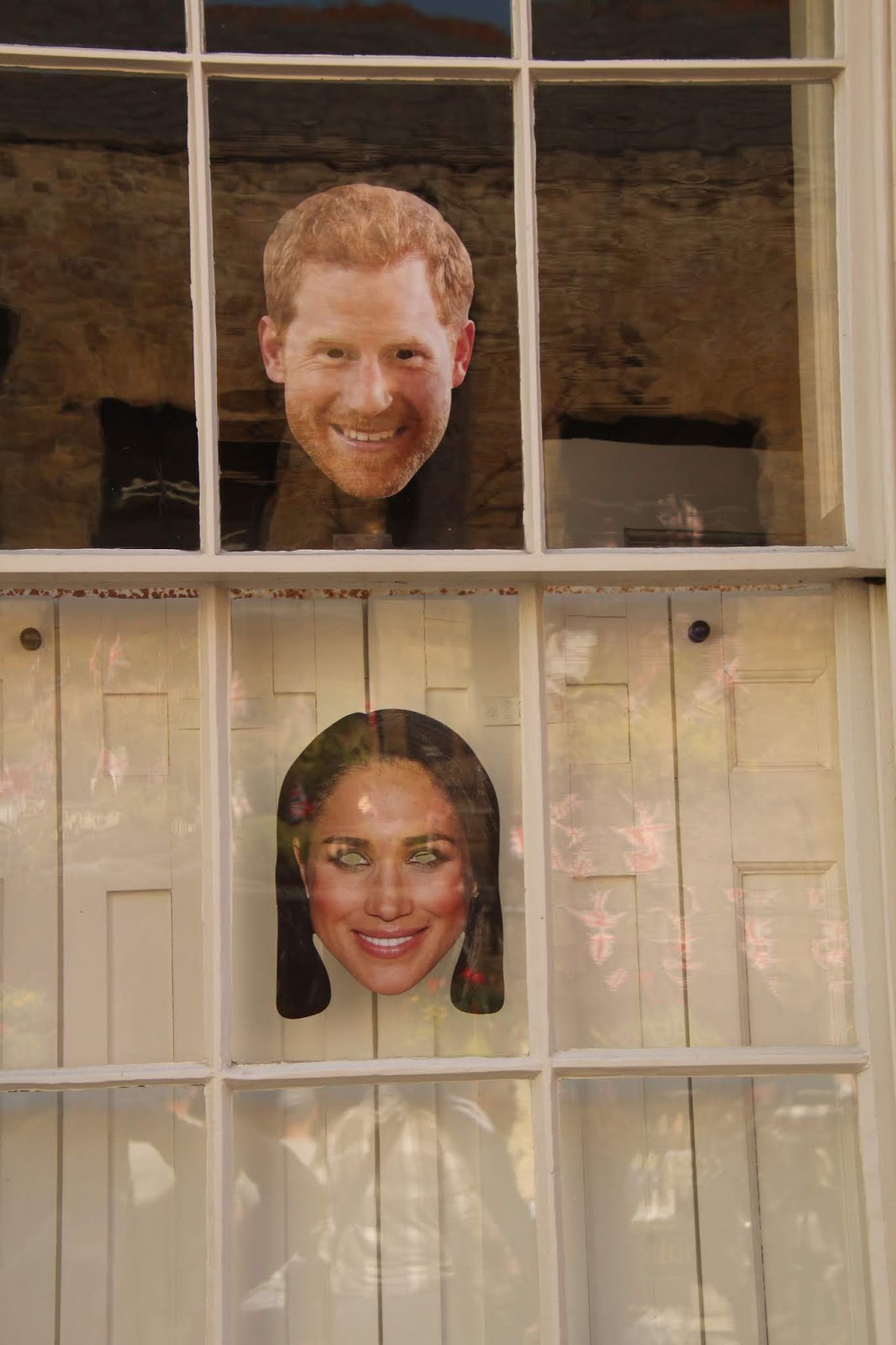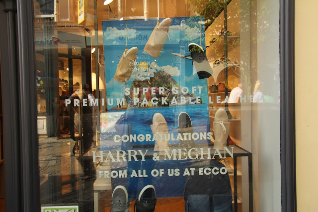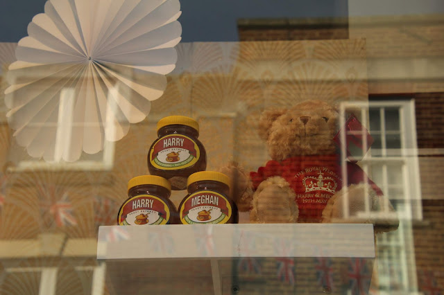High Street and Peascod were suitably decorated for the wedding, bunting everywhere. Nearly every store window was decorated and several places to have your photo taken with Harry and Meghan.