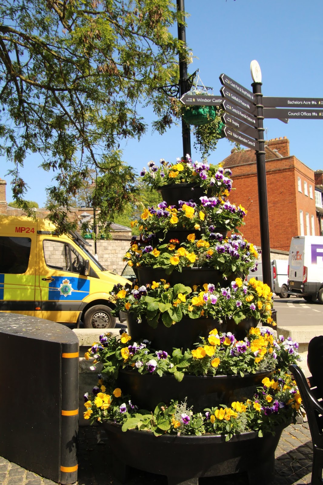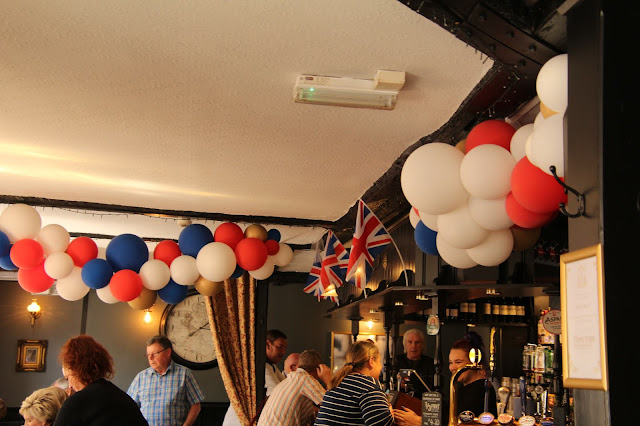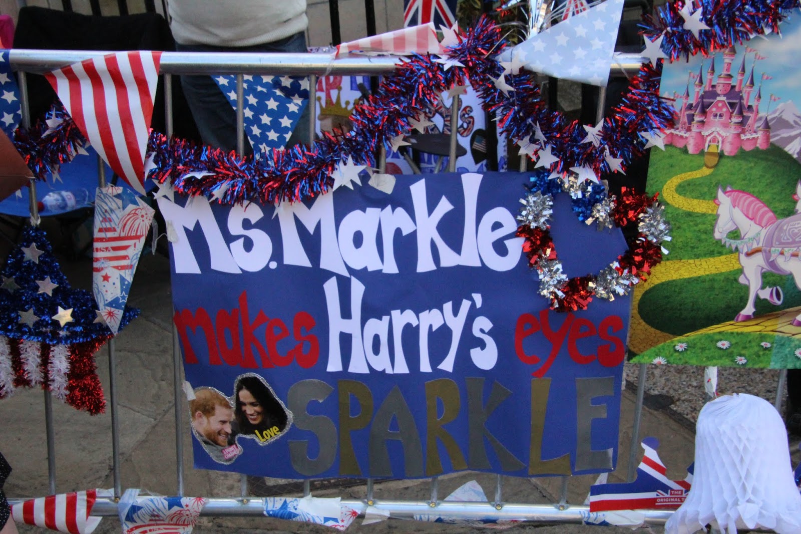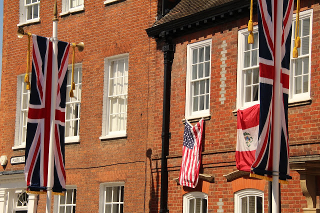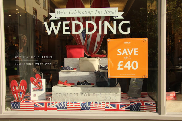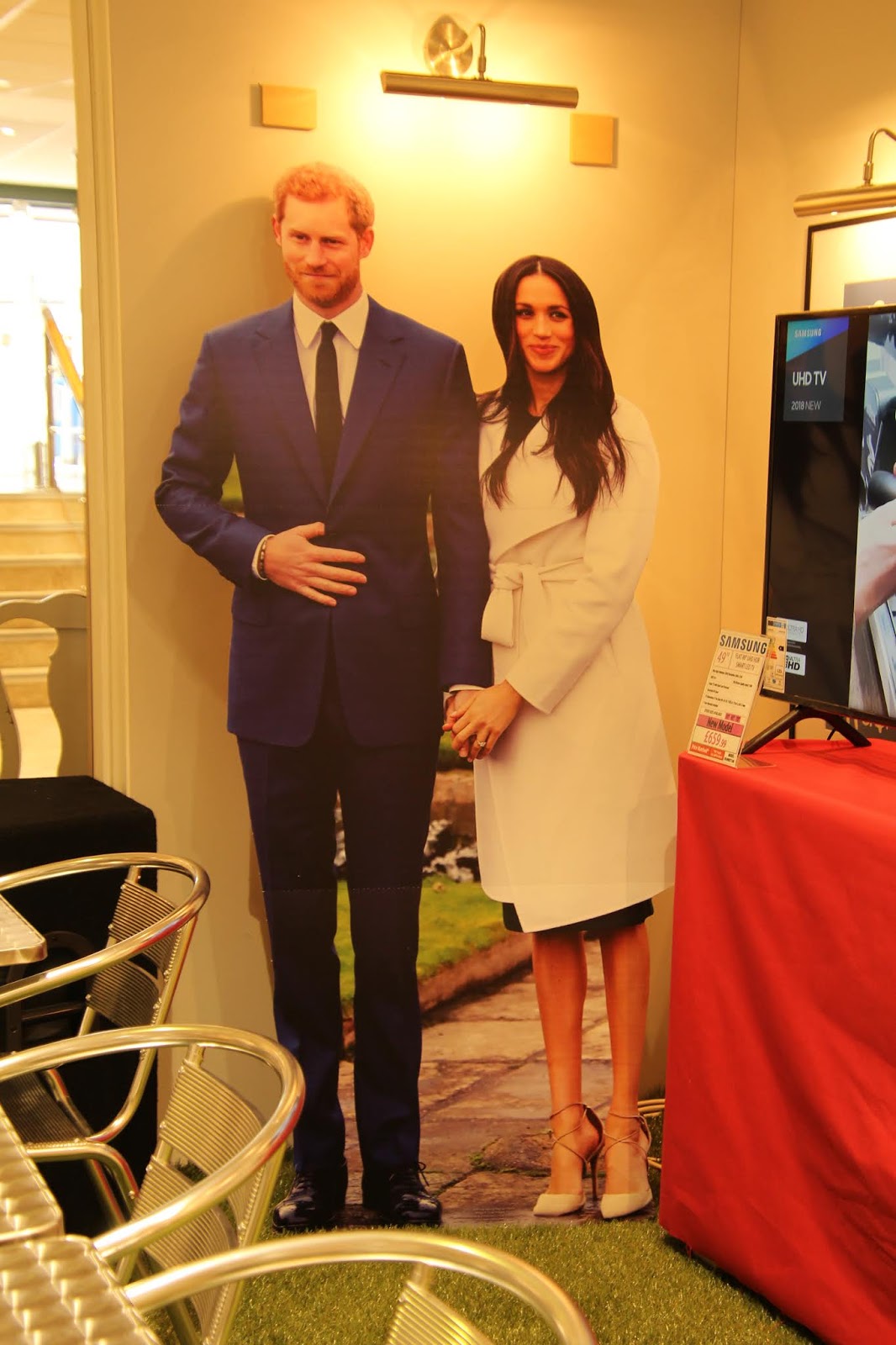 High Street and Peascod were suitably decorated for the wedding, bunting everywhere. Nearly every store window was decorated and several places to have your photo taken with Harry and Meghan.