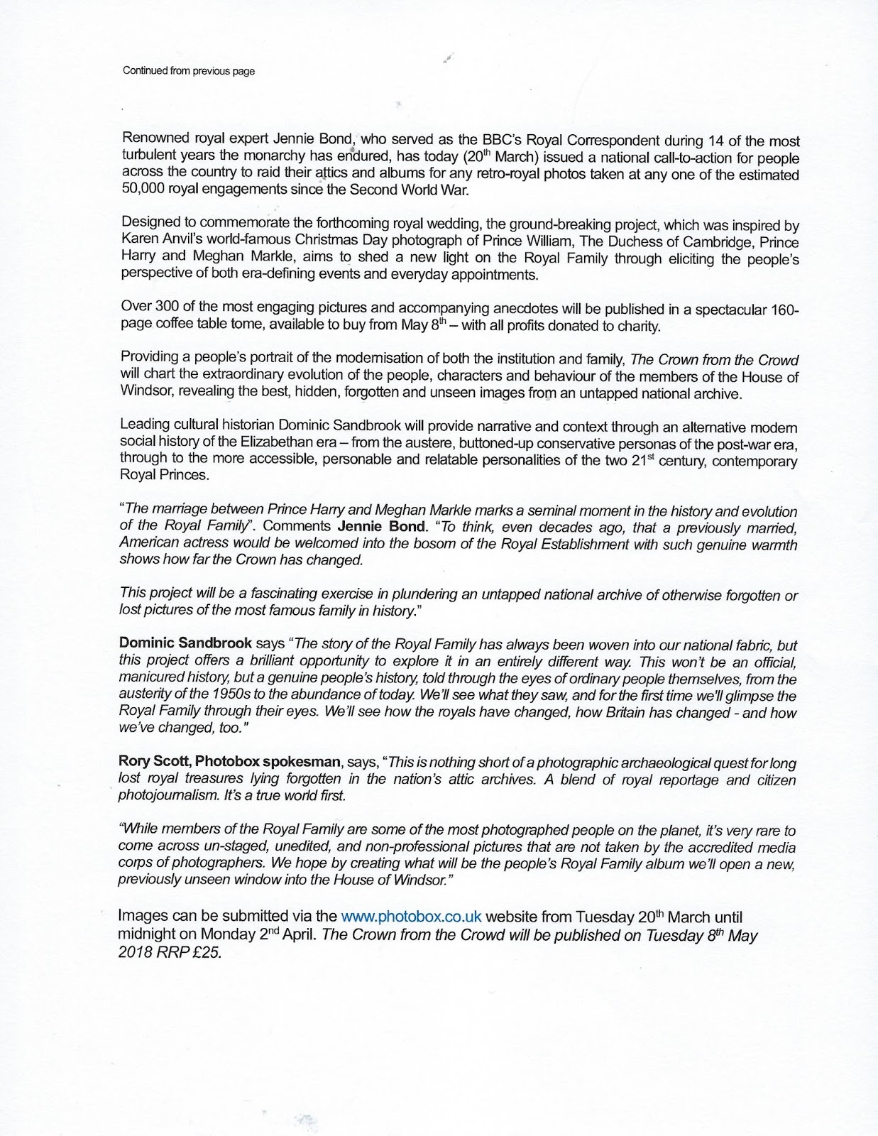 Have you snapped a member of the British royal family? Here is your chance to see the photo (perhaps) published in a new book, The Crown from the Crowd. The details are located in the press release.