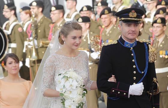 The new princess' elderly father, Count Philippe de Lannoy, attended the ceremony in a wheelchair. Stéphanie's eldest brother, Count Jehan, will be walking her down the aisle at tomorrow's religious wedding.