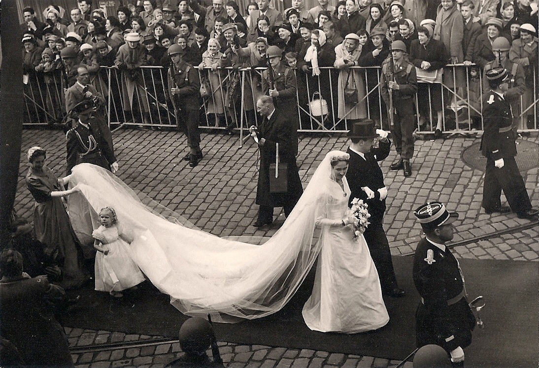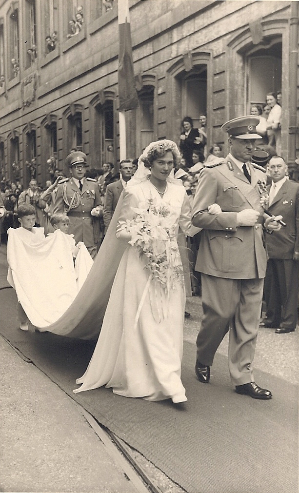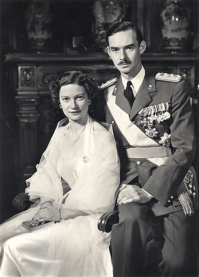 The heir to the throne, Hereditary Grand Duke Jean, married Princess Josephine-Charlotte of Belgium, the only daughter of King Leopold III and Princess Astrid of Sweden. It was largely an arranged marriage as the bride and groom had fallen in love with others. But it would have been impossible for Jean to have married a commoner. Josephine Charlotte, a goddaughter of Grand Duchess Charlotte, was the perfect choice, even though she loved another man. One can see the sadness in Josephine Charlotte's eyes in many of the wedding photos.