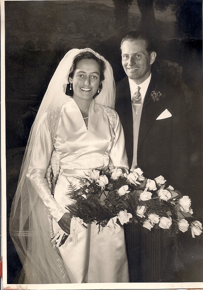 1962 Juan Carlos and Sophia of Greece wedding: Princess Marina, Duchess of Kent, Princess Alexandra (bridesmaid) and Prince Michael of Kent, and Lord Mountbatten