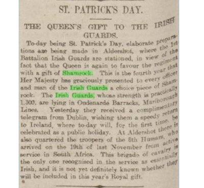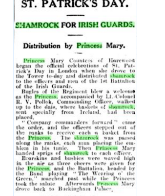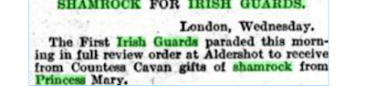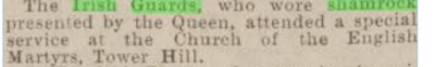 Quoting the Irish Guards Quarterly: "1949 March 17 ST. PATRICK’s DAY.