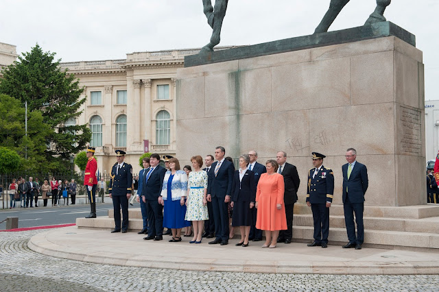 At half past ten, there was a military ceremony, at which floral wreaths were laid at the Statue of King Carol I in Bucharest’s Royal Palace Square. The soldiers of the Michael the Brave Thirtieth Regimental Guard presented arms and the regimental band played. In attendance were Crown Princess Margareta the Custodian of the Romanian Crown, Prince Radu, Princess Elena, Mr Alexander Philips Nixon (the husband of Princess Elena), Princess Sofia, and Archduchess Maria-Magdalena of Austria, the daughter of Princess Ileana of Romania.