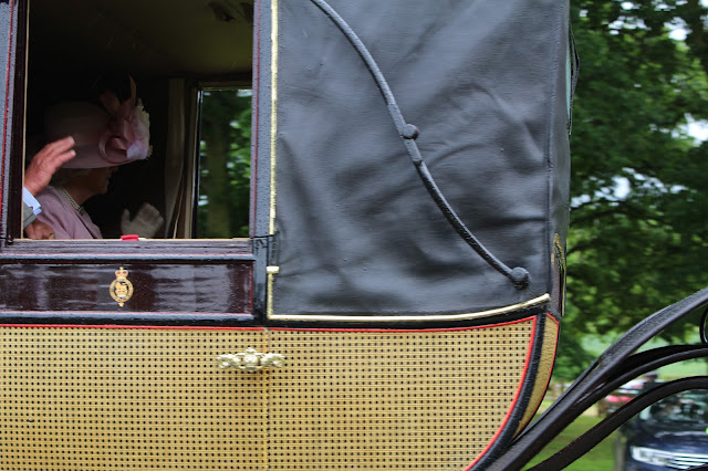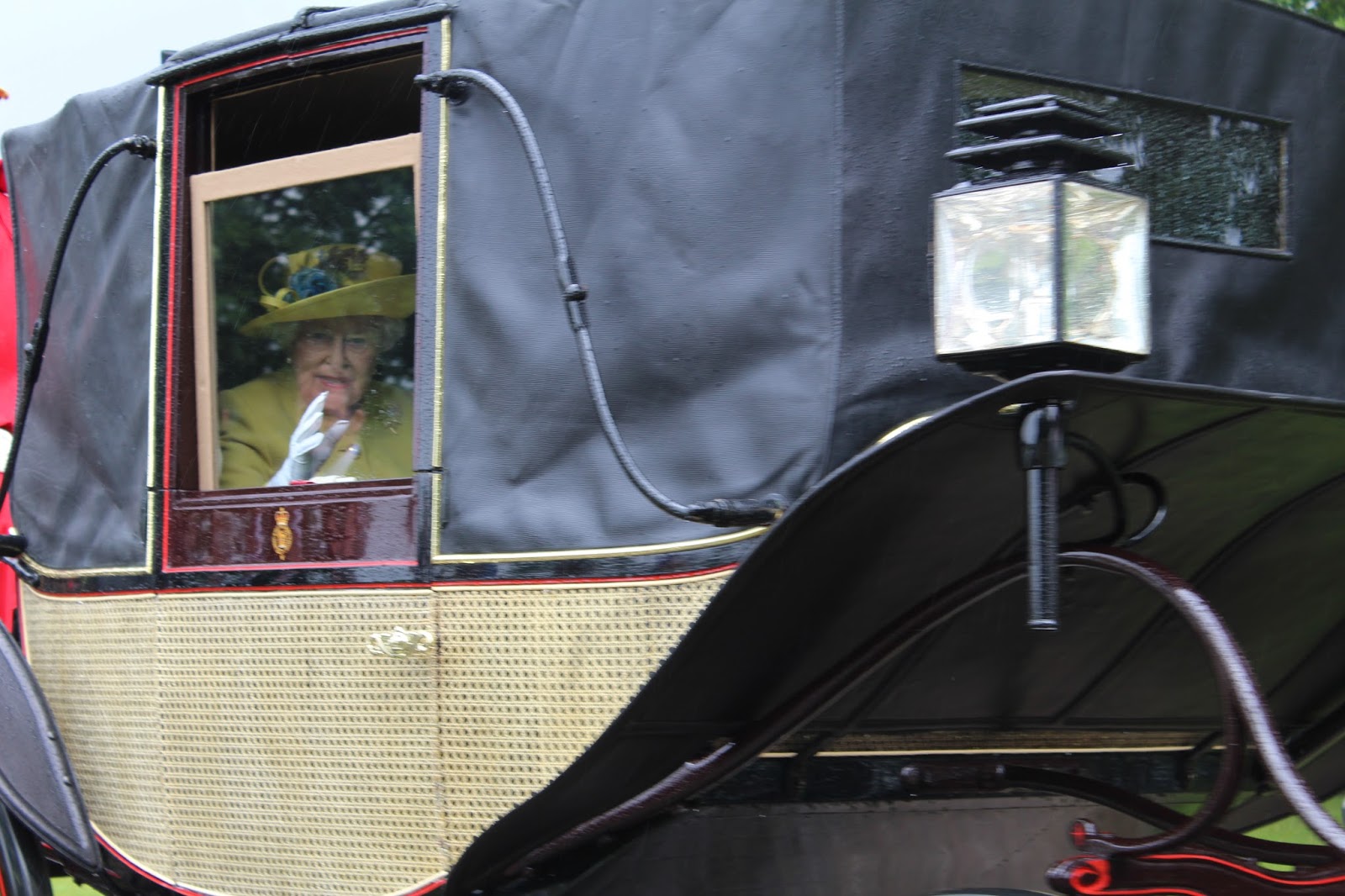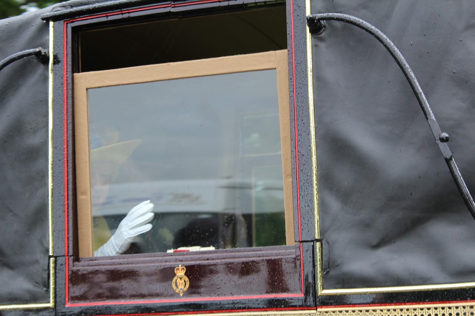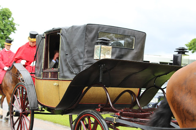 Duke's Lane for the first day of Ascot -- the procession down the Long Walk. Rain. Closed carriages.