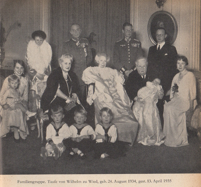 The date is wrong. Wilhelm, third son of Prince and Princess Dietrich of Wied, was born on August 24, 1936, and died on April 13, 1937. I was asked to ID the photo, and I think I got most of them .. but Wieds are not my strongest point.