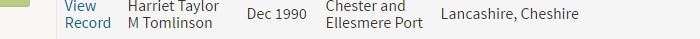 Harriet Taylor M. Tomlinson was born in late 1990. Her parents, Grahame Montgomery Tomlinson and Anne L. Taylor were married in Chester in September 1988.