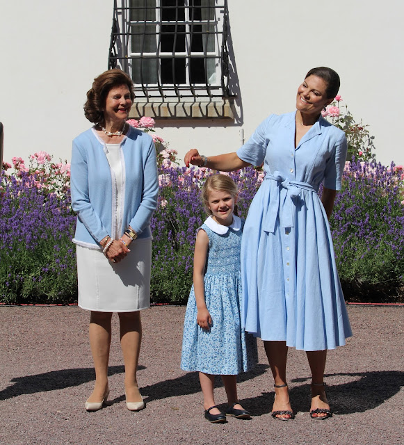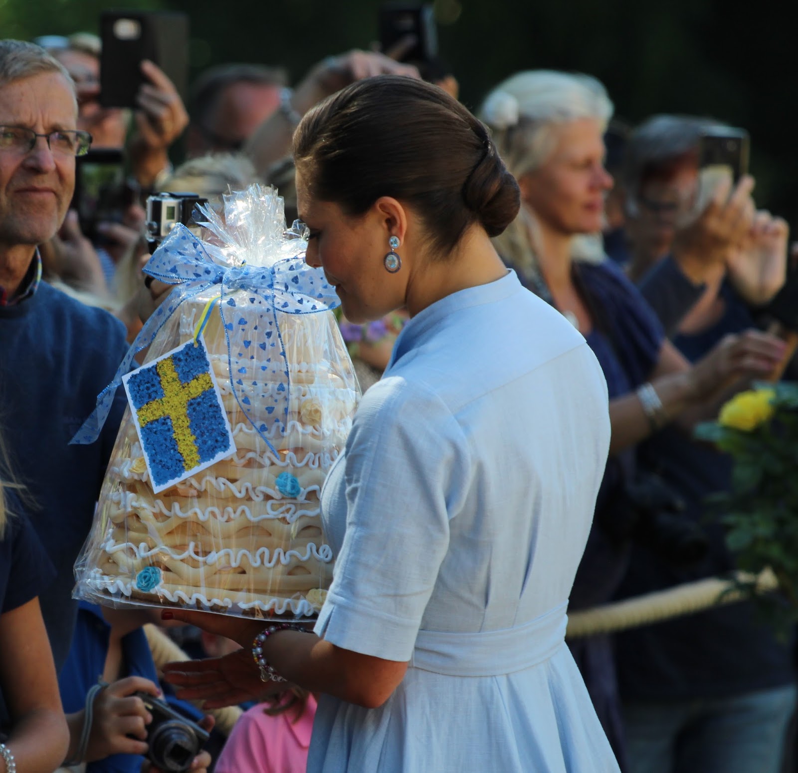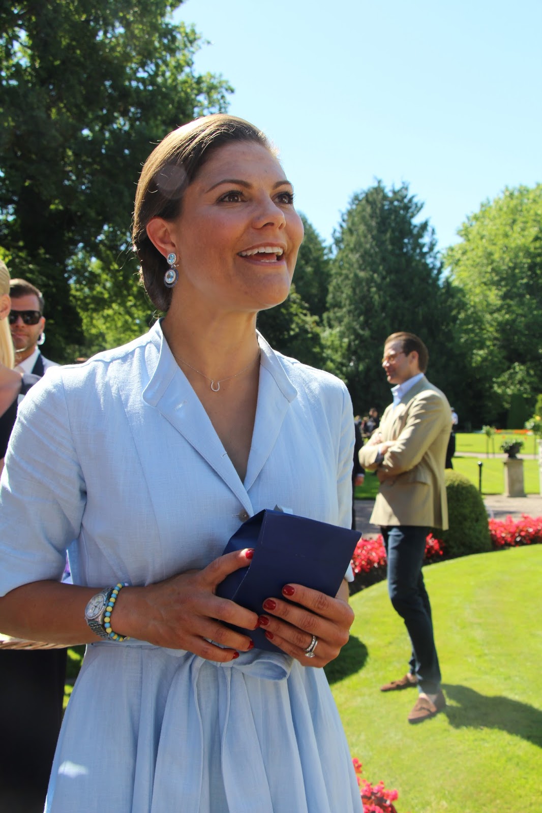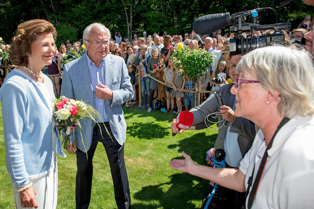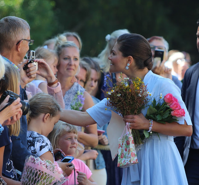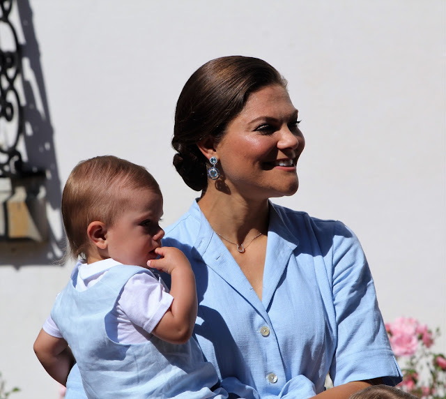 July 15, 2017. Victoria's birthday celebration at Solliden castle, the royal family's summer home on Öland. For the first time ever, guests had to go through a bag check before entering the grounds. The King and Queen and Crown Princess Victoria, Prince Daniel, Princess Estelle and Prince Oscar came out at 11 am. The crowd was at least six deep. It took the Crown Princess about 2 hours to make her way through both sides, greeting people, accepting presents, and posing for selfies. Estelle and Oscar posed for photos, greeted a few people before deciding they wanted to go inside.