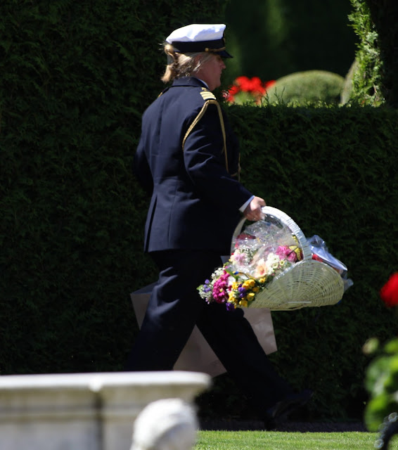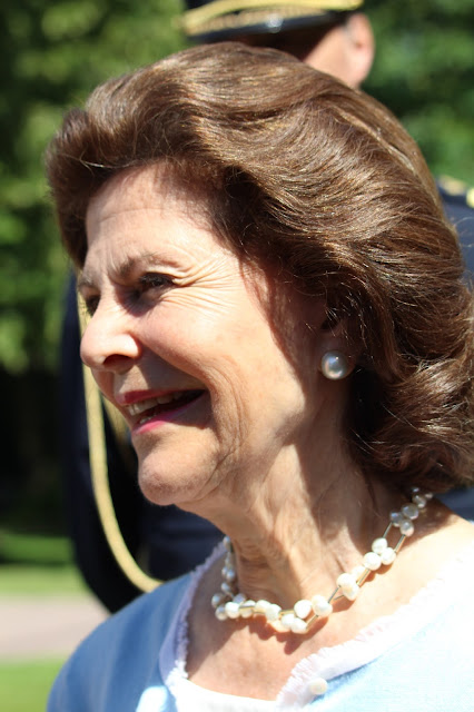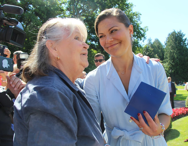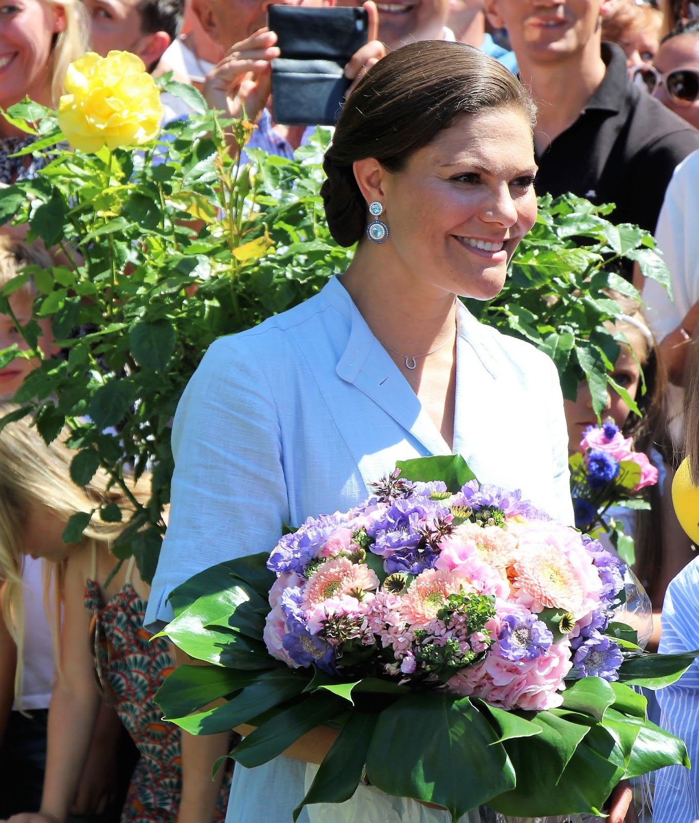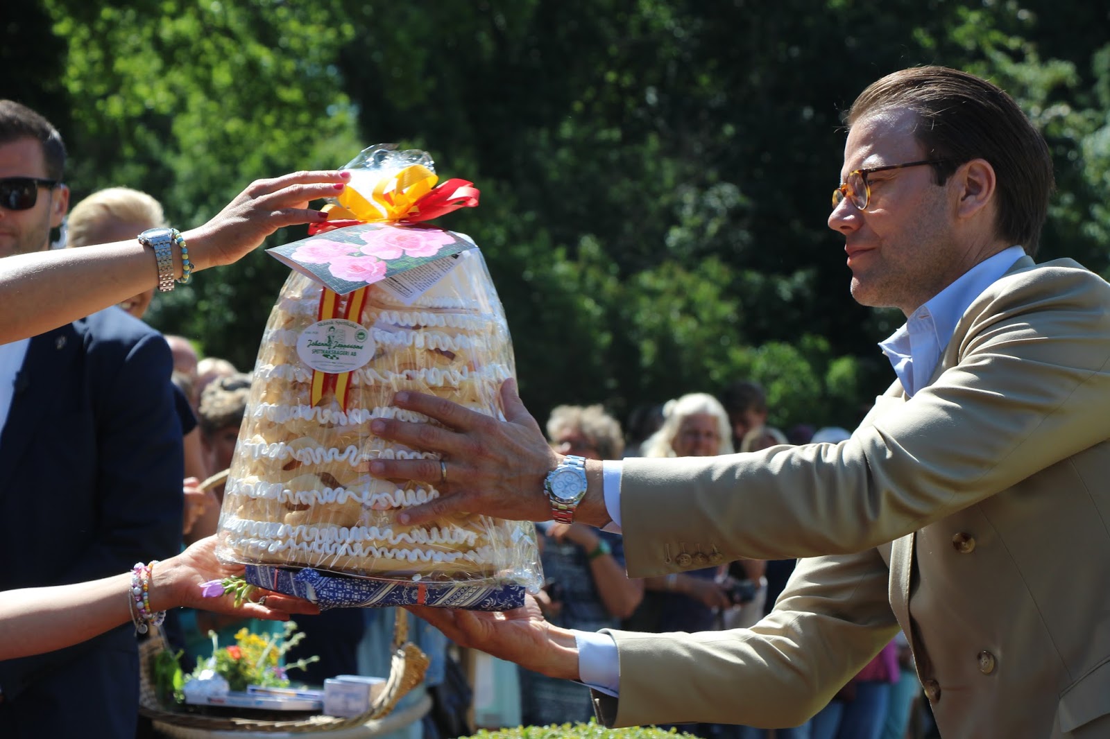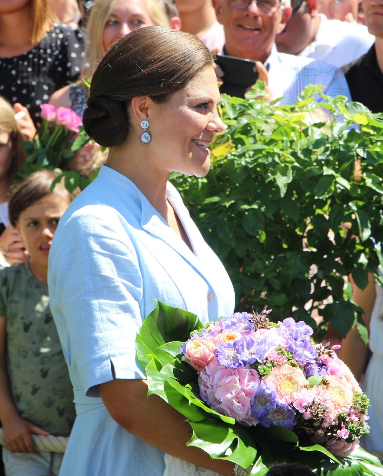 July 15, 2017. Victoria's birthday celebration at Solliden castle, the royal family's summer home on Öland. For the first time ever, guests had to go through a bag check before entering the grounds. The King and Queen and Crown Princess Victoria, Prince Daniel, Princess Estelle and Prince Oscar came out at 11 am. The crowd was at least six deep. It took the Crown Princess about 2 hours to make her way through both sides, greeting people, accepting presents, and posing for selfies. Estelle and Oscar posed for photos, greeted a few people before deciding they wanted to go inside.