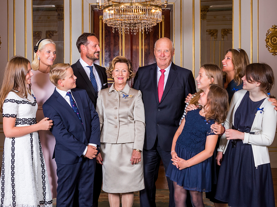 They were joined by their children, Crown Prince Haakon, with Crown Princess Mette-Marit, and Princess Martha Louise, and their grandchildren, Princess Ingrid Alexandra, Prince Sverre Magnus, Maud, Leah and Emma Behn. The King's sister, Princess Astrid and her family were also present.